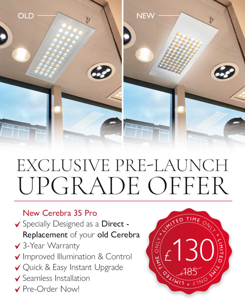 If your store or window still shines with our classic Cerebra lights, now is the moment to step into the future! We’ve created a version of our new Cerebra 35 Pro to replace your old model with minimal fuss. The upgrade offers superior illumination, dimmable control via the Phillips Hue system and is backed by a 3-year warranty! For a limited time, take advantage of our exclusive offer